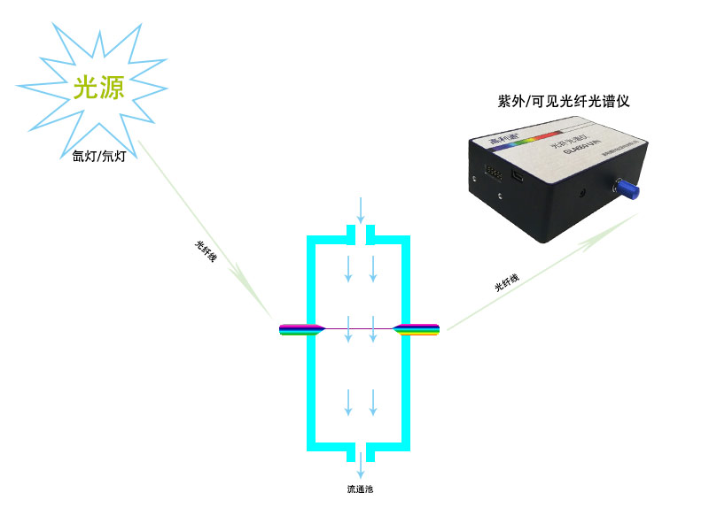 使用紫外/可见光纤光谱仪,使用2048/3648象素的线阵CCD,配合光栅,可以配置出190-400nm/190-750nm/350-1000nm的范围多款光纤光谱仪(可根据需求定制),配合滤波片可以消除二级衍射,分辨率高。所有的光谱仪均可接收SMA905接口
