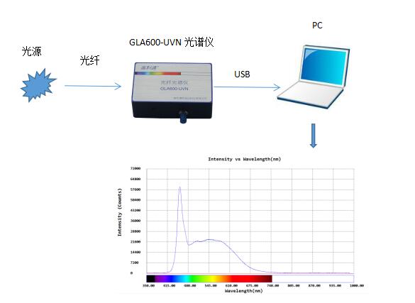 辐射测量可以用于测量光源的光谱分布,如LED, 激光和其它灯源, 辐射测量图示如下: