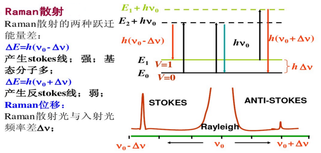 斯托克斯线(Stokes):基态分子跃迁到虚能级后不会到原处基态,而落到另一较高能级发射光子,发射的新光子能量hv‘显然小于入射光子能量hv,△V 就是拉曼散射光谱的频率位移。反斯托克斯线(anti-Stokes):发射光子频率高于原入射光子频率。