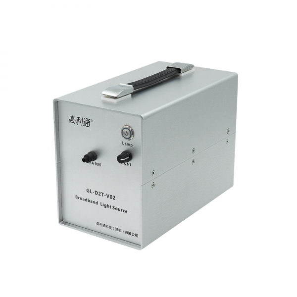 • GL-D2T-V02一体化近红外增强的宽带氘钨灯,可提供200nm至2500nm (决定于所用的滤光片)紫外-可见-近红外光高效稳定的连续输出光谱
