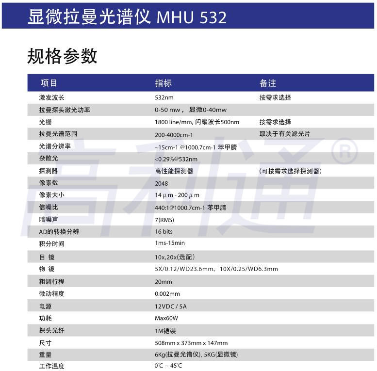 ●532nm激发光、高性能光电探测器、光栅分光